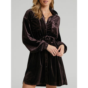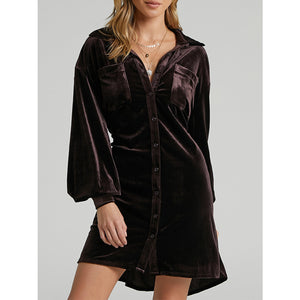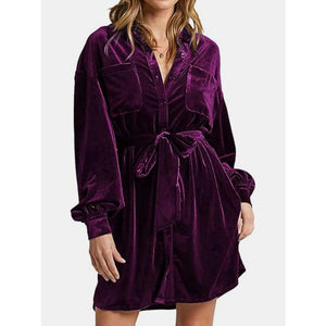 Collared Neck Button Down Long Sleeve Mini Dress