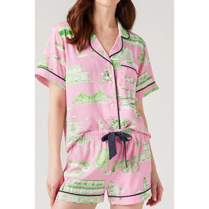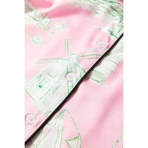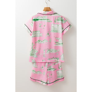 Collared Neck Printed Top and Drawstring Shorts Lounge Set