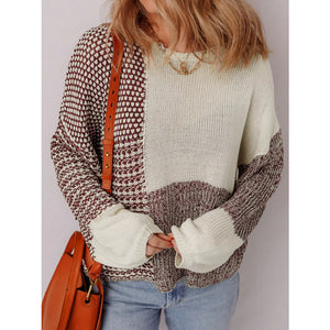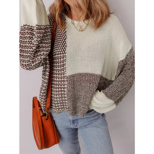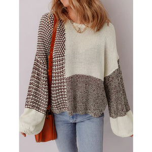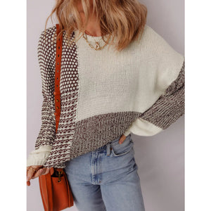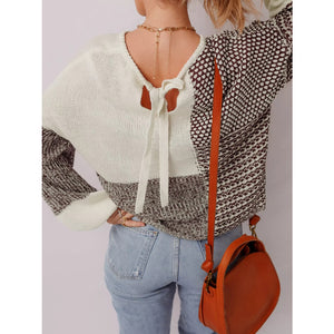 Color Block Back Tie Drop Shoulder Loose Sweater