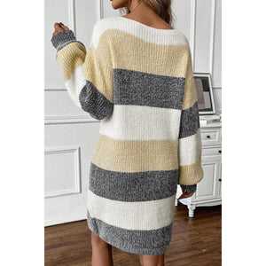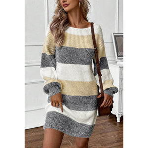 Color Block Boat Neck Long Sleeve Sweater Dress
