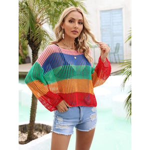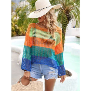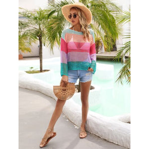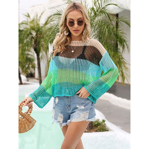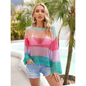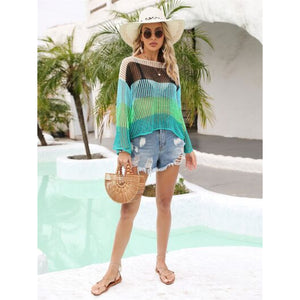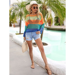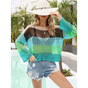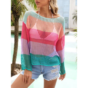 Color Block Openwork Boat Neck Cover Up