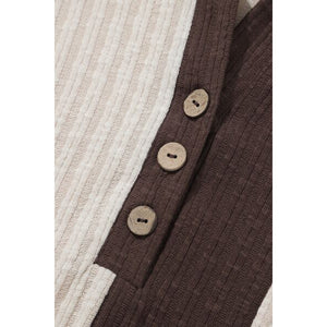 Color Block Quarter Button Lantern Sleeve Hoodie