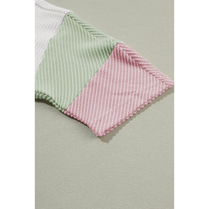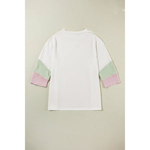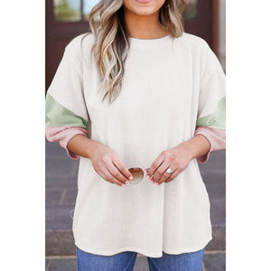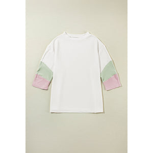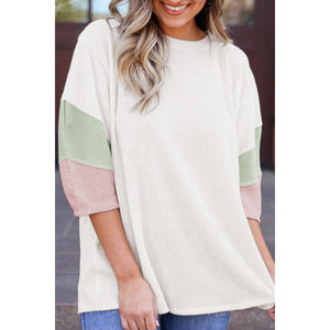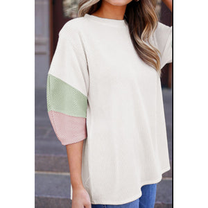 Color Block Ribbed Knit Three-Quarter Sleeve Top