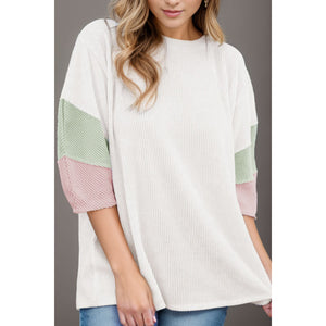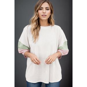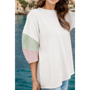 Color Block Round Neck Dropped Shoulder Blouse