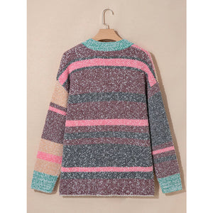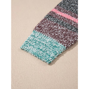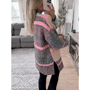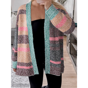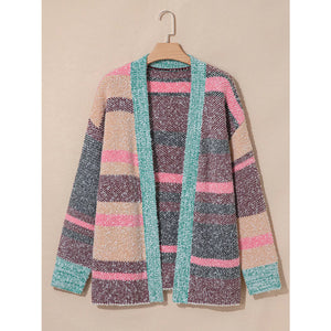Color Block Striped Side Slit Open Front Cardigan