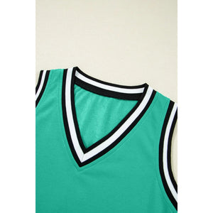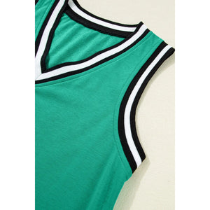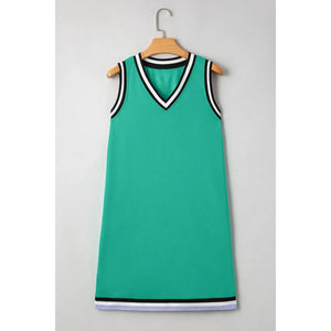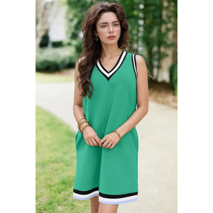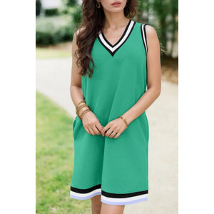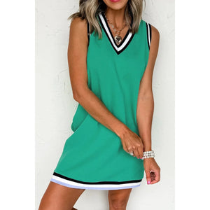 Color Contrast Trim V Neck Shift Sleeveless Mini Dress