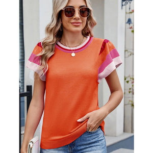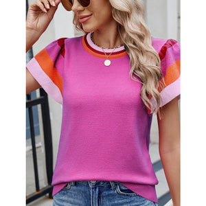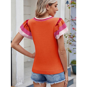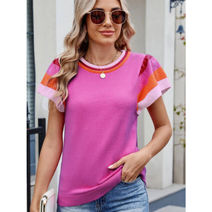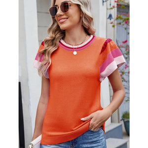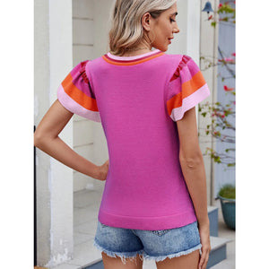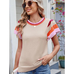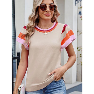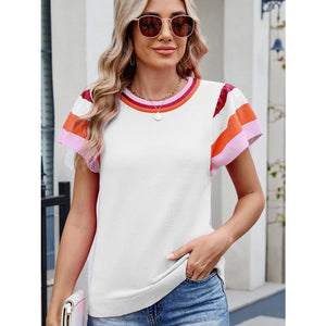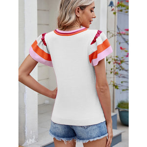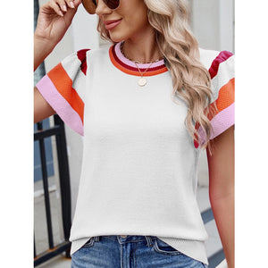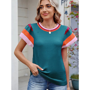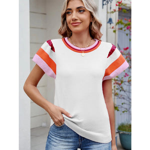 Colorblock Striped Short Sleeve Sweater