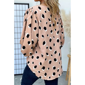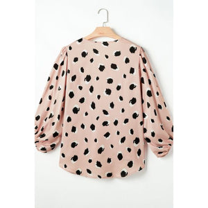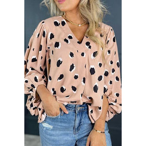 Contrast Animal Print V-Neck Long Sleeve Blouse