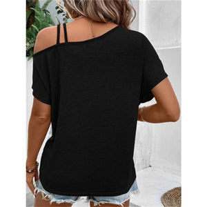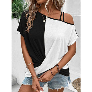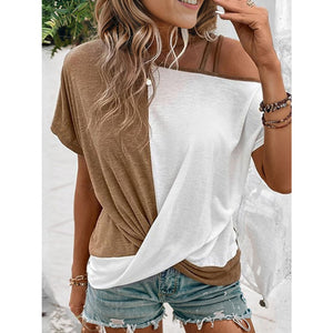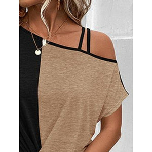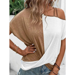 Contrast Asymmetrical Neck Short Sleeve T-Shirt
