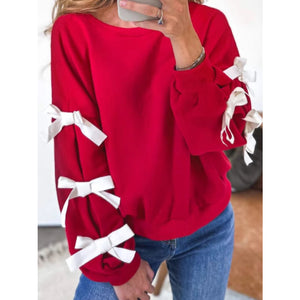 Contrast Bow Round Neck Long Sleeve Sweatshirt