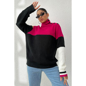 Contrast Buttoned Cutout Long Sleeve Sweater