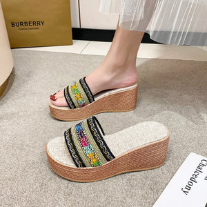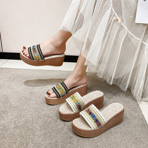 Contrast Cloth Wedge Sandals