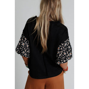 Contrast Floral Puff Sleeve Oversized Top