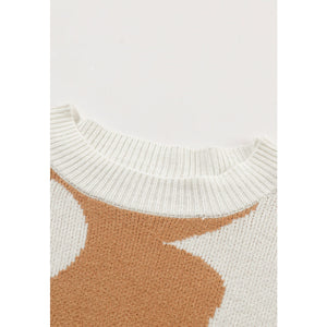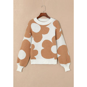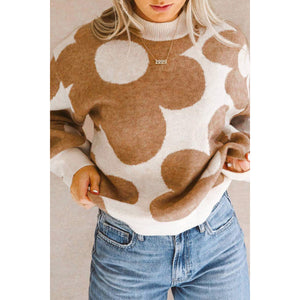 Contrast Flower Mock Neck Long Sleeve Sweater