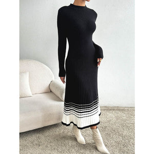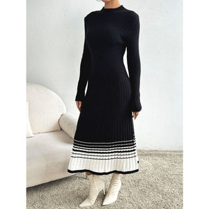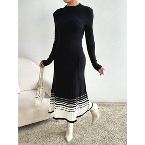 Contrast Mock Neck Long Sleeve Sweater Dress