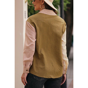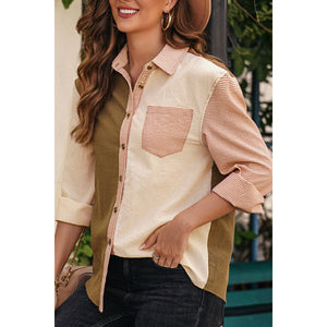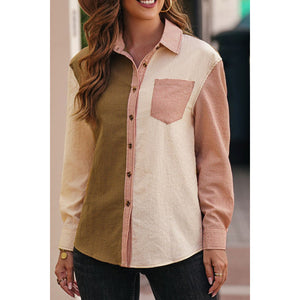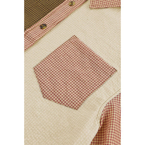Contrast Plaid Button Down Long Sleeve Shirt