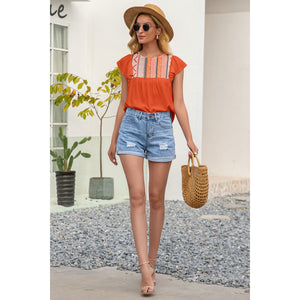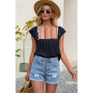 Contrast Print Butterfly Sleeve Top