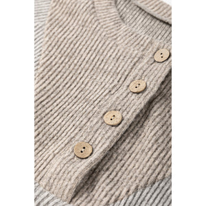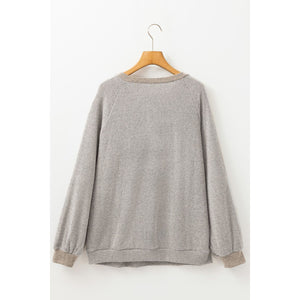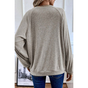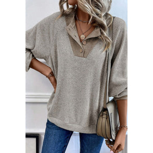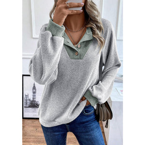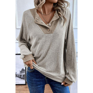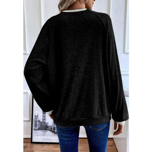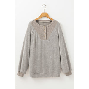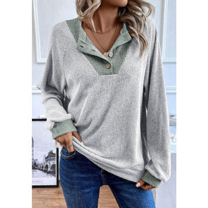 Contrast Quarter Button Round Neck Long Sleeve Top