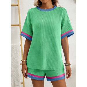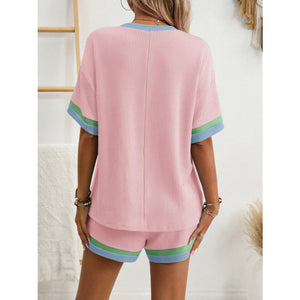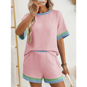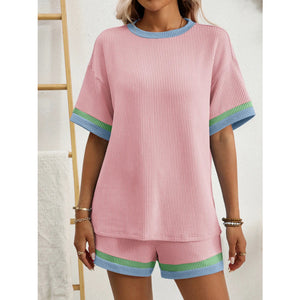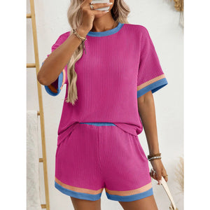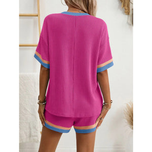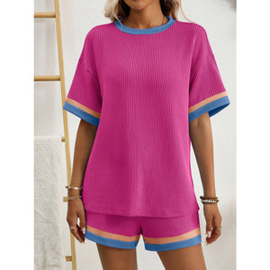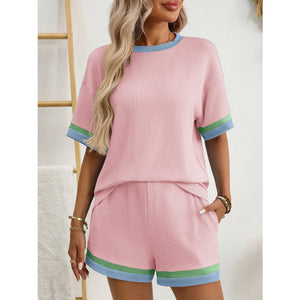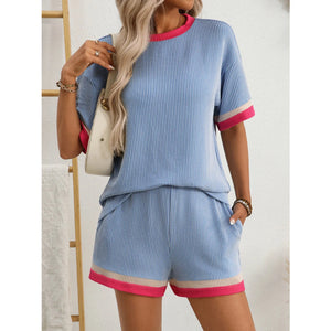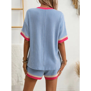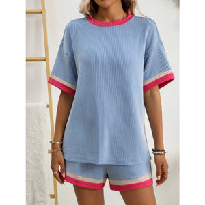 Contrast Round Neck Short Sleeve Top and Shorts Set