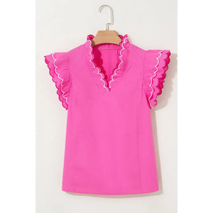Contrast Scallop Trim Layered Short Sleeve V Neck Blouse