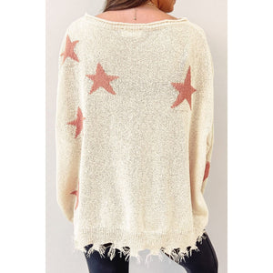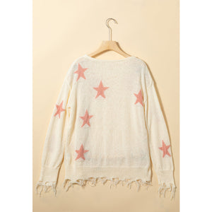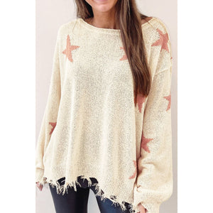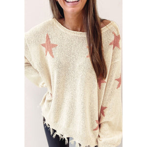 Contrast Star Raw Hem Long Sleeve Knit Top