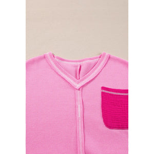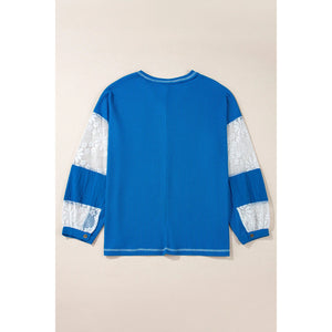 Contrast Stitching Lace Detail V-Neck Long Sleeve Top