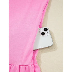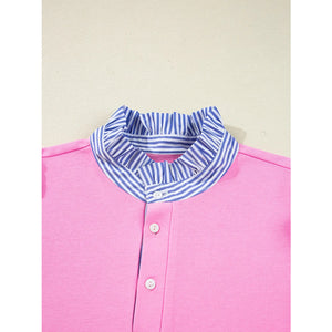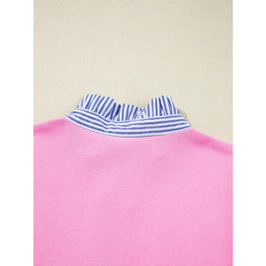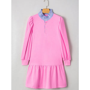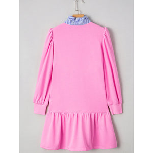 Contrast Striped Collar Patchwork Puff Sleeve Ruffle Hem Mini Dress