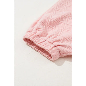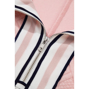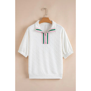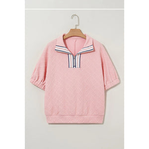 Contrast Striped Collar Patchwork Textured Half Sleeve Blouse