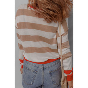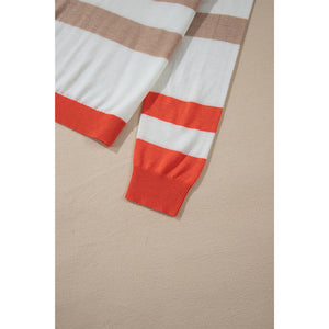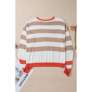 Contrast Striped Round Neck Drop Shoulder Knit Top