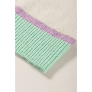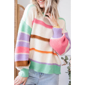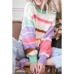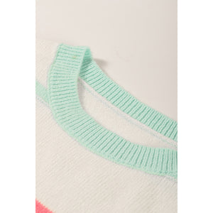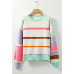 Contrast Striped Round Neck Drop Shoulder Sweater