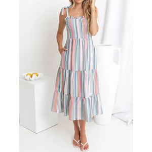 Contrast Striped Square Neck Cami Dress
