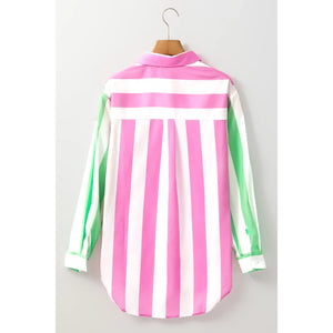 Contrast Stripes Collared Neck Long Sleeve Shirt