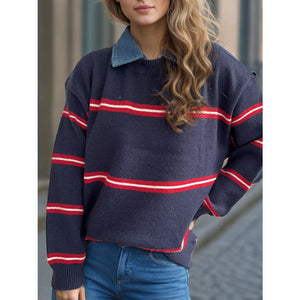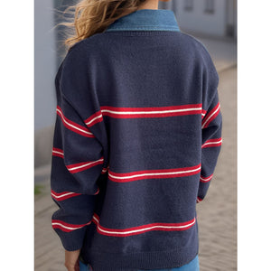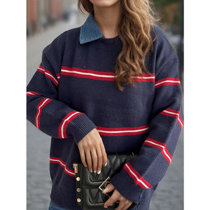 Contrast Stripes Round Neck Long Sleeve Sweater