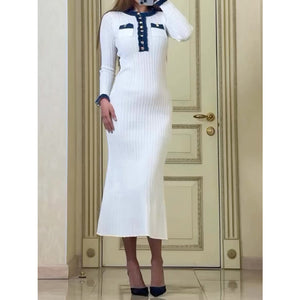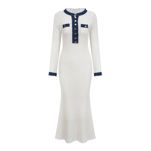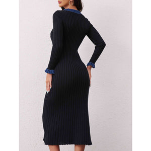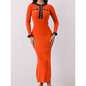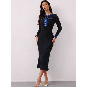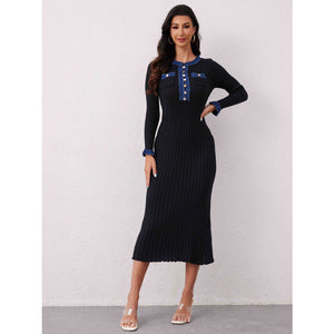 Contrast Trim Round Neck Long Sleeve Sweater Dress