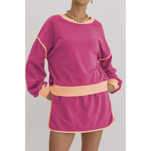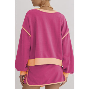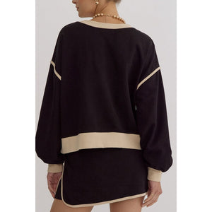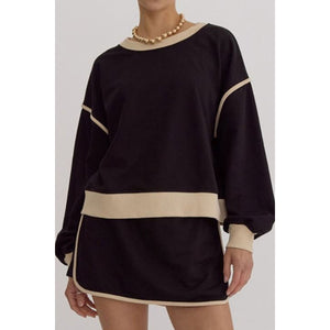 Contrast Trim Round Neck Top and Skort Set