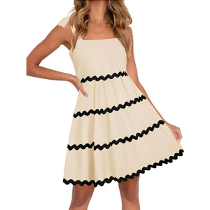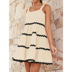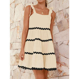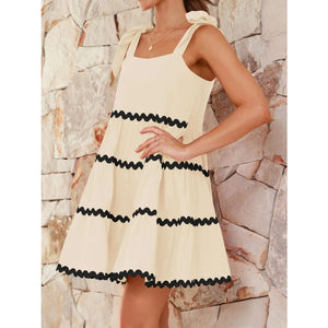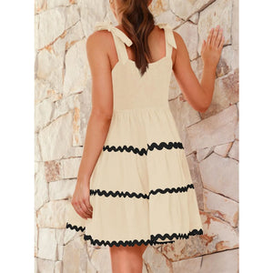 Contrast Trim Tie Shoulder Dress
