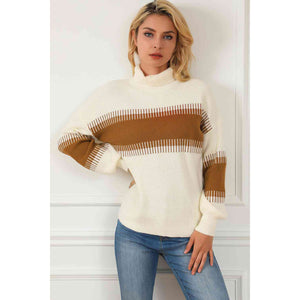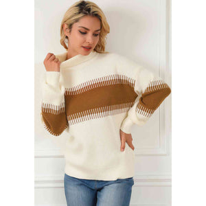 Contrast Turtleneck Long Sleeve Sweater