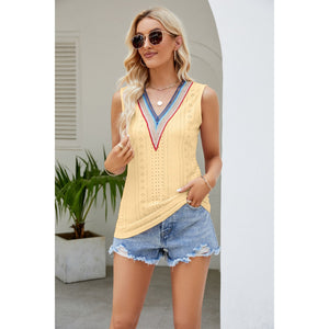 Contrast V-Neck Eyelet Tank