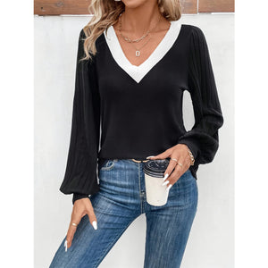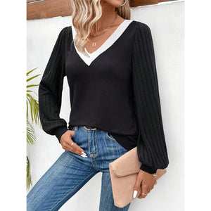 Contrast V-Neck Long Sleeve T-Shirt