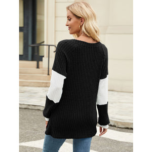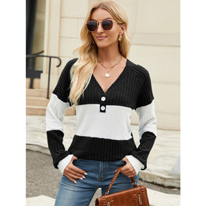 Contrast V-Neck Long Sleeve T-Shirt