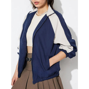 Contrast Zip Up Collared Neck Long Sleeve Jacket
