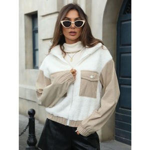 Contrast Zip Up Long Sleeve Jacket