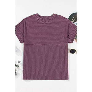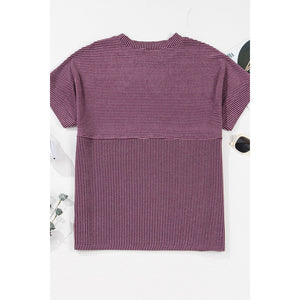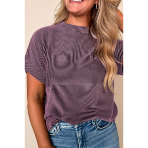 Corded Knit Mock Neck Short Sleeve T Shirt