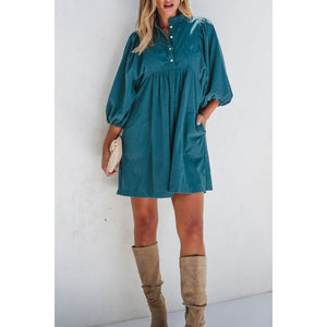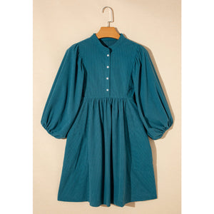 Corduroy Quarter Snap Three-Quarter Sleeve Dress