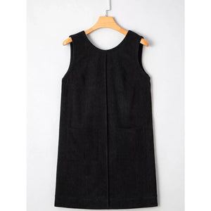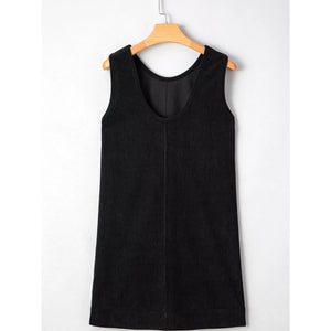 Corduroy Sleeveless Mini Dress with Patched Pockets