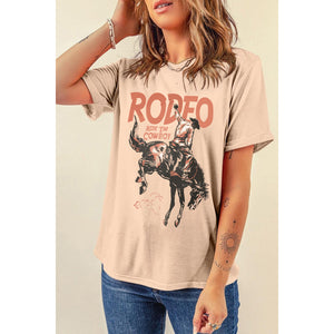 Cowboy Graphic Round Neck Short Sleeve T-Shirt