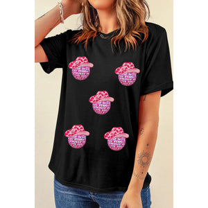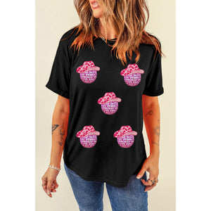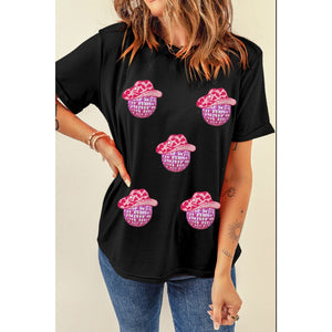 Cowboy Hat Disco Ball Patched Round Neck T-Shirt
