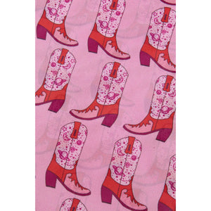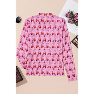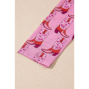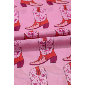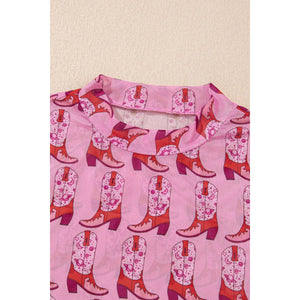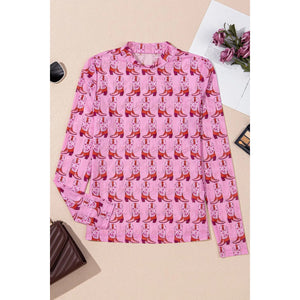 Cowgirl Boots Printed Mock Neck Long Sleeve Mesh Top