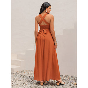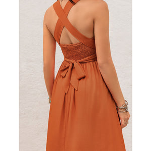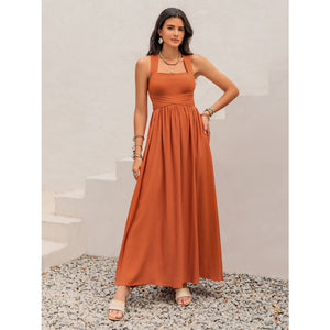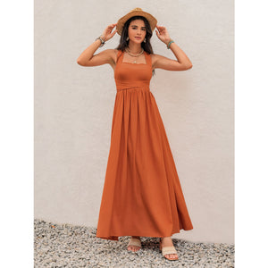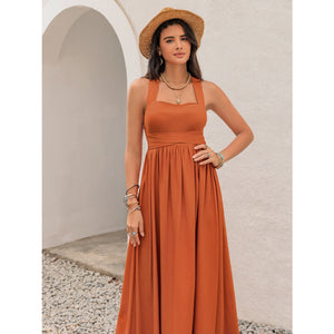 Crisscross Back Smocked Square Neck Maxi Dress