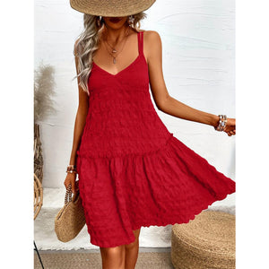 Crisscross Double Spaghetti Straps Tiered Cami Dress